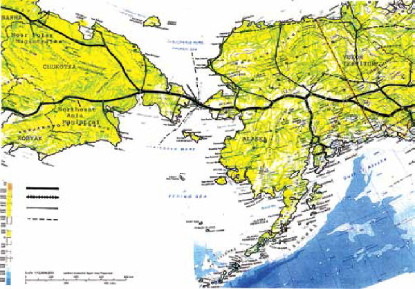 der Tunnel unter der Beringstraße, der Rußland, China und die Vereinigten