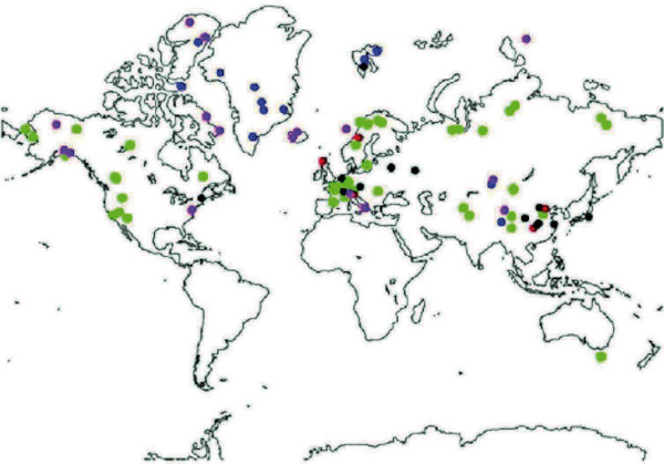 Abb. 1: Herkunftsorte der Temperatur-Rekonstruktionen