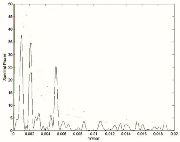 ein Spektrum der Sonnenaktivität über 8000 Jahre, und wir sehen, daß die drei