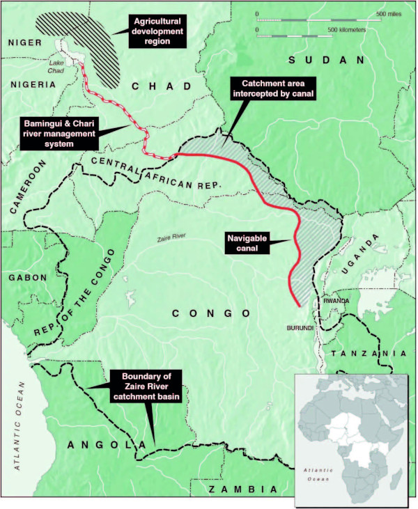 lange Wasserstraße geschaffen werden könnte, die 5-8% des Kongo-Wassers nutzt