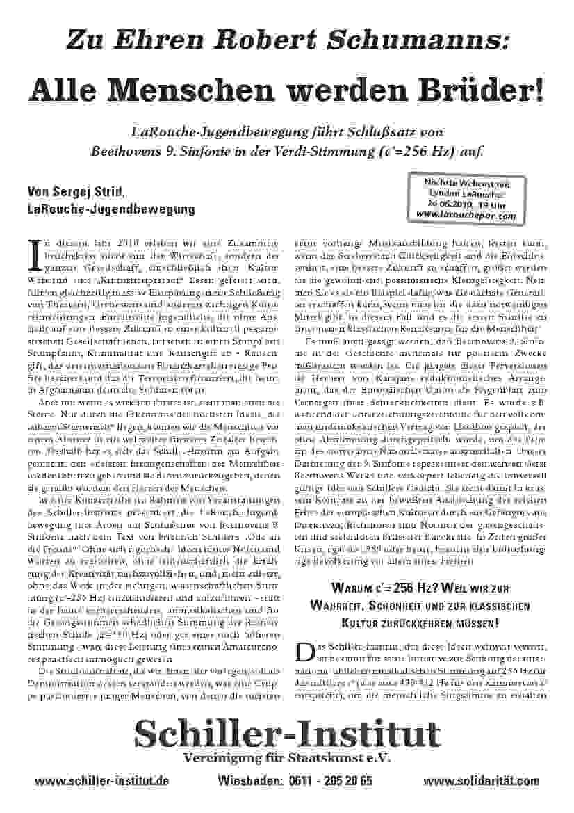 Zu Ehren Robert Schumanns: Alle Menschen werden Brüder!Von Sergej Strid, LaRouche-Jugendbewegung