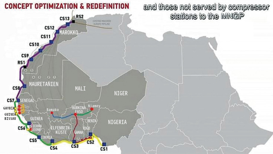 Marokko-Nigeria-Gaspipeline (MNGP) soll über eine Länge von 5660 km zahlreiche