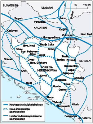 Geplantes Bahnnetz von Bosnien-Herzegowina