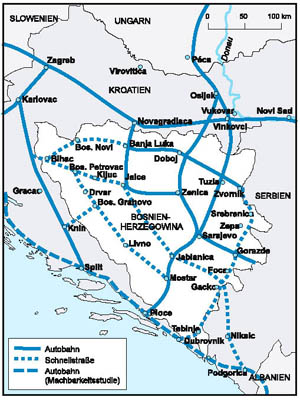 Geplantes Straßennetz von Bosnien-Herzegowina